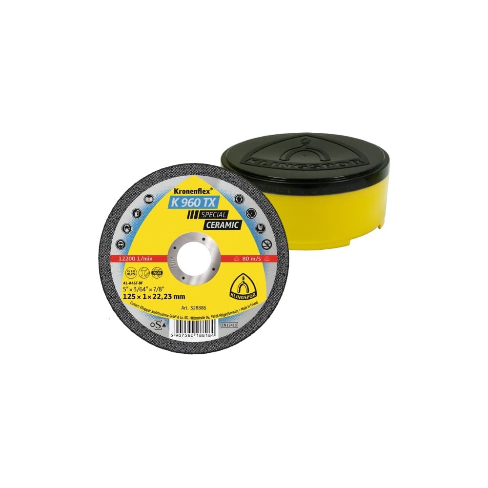 "K 960 TX Special" – didelio našumo Kronenflex pjovimo diskas, yra ypač plonas, specialiai sukurtas kietoms ir elastingoms medžiagoms pjauti. Kadangi šis pjovimo diskas pagamintas iš keramikinio aliuminio oksido, jis pasižymi maksimaliu agresyvumu. Jis idealiai tinka tokioms medžiagoms kaip plieną, nerūdijantį plieną, labai legiruotą plieną, anglinį plieną ir titaną pjauti.