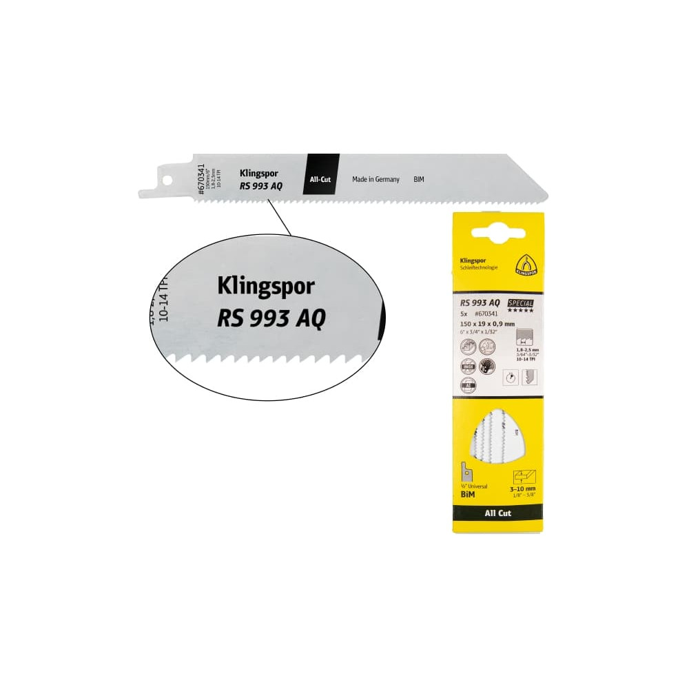 Tiesinio pjūklo pjūkleliai KLINGSPOR RS 993 AQ, 150x19x0,9 mm, universalūs